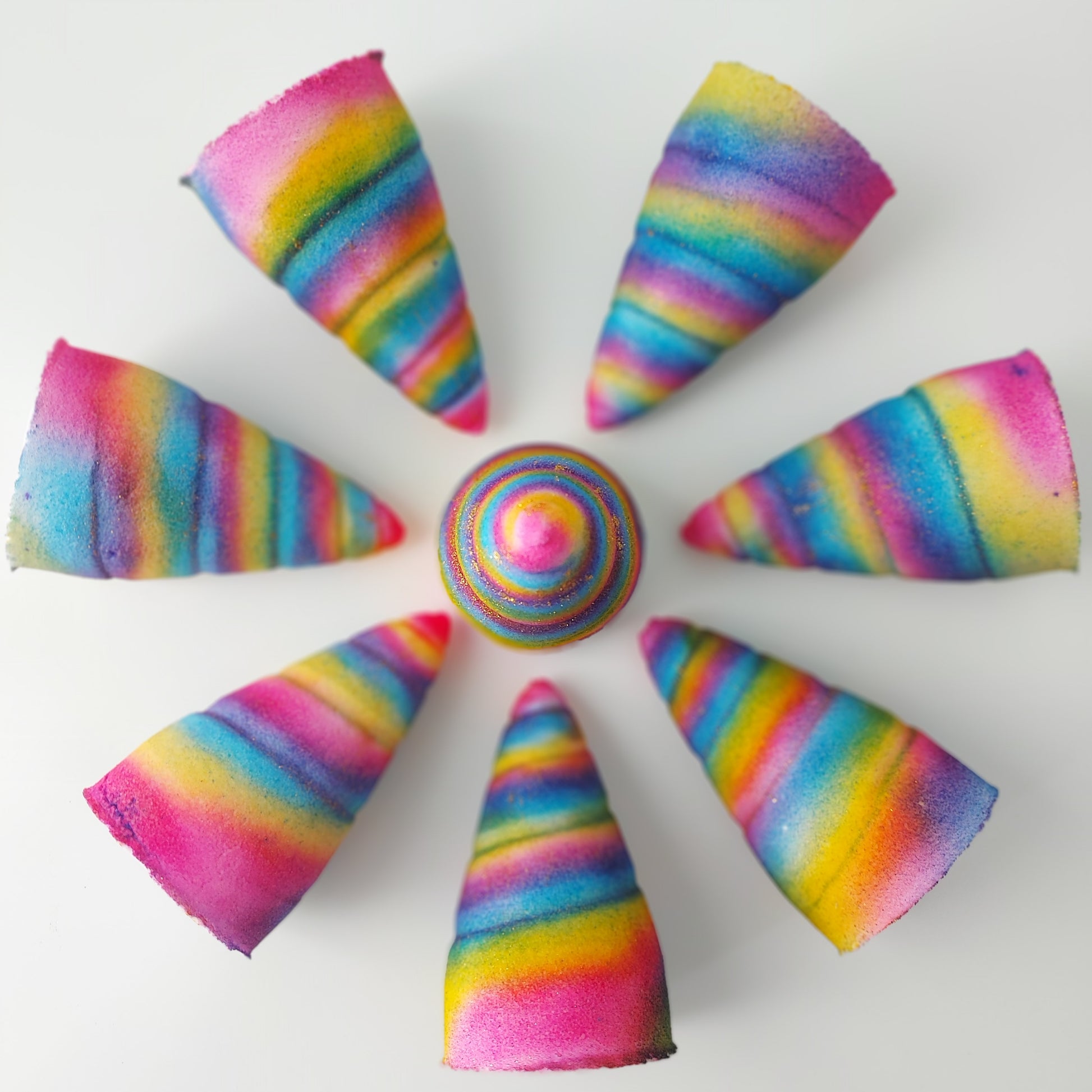 Unleash the magic of a unicorn into your bath! A swirly rainbow of color and scent of fruity cereal awaits.