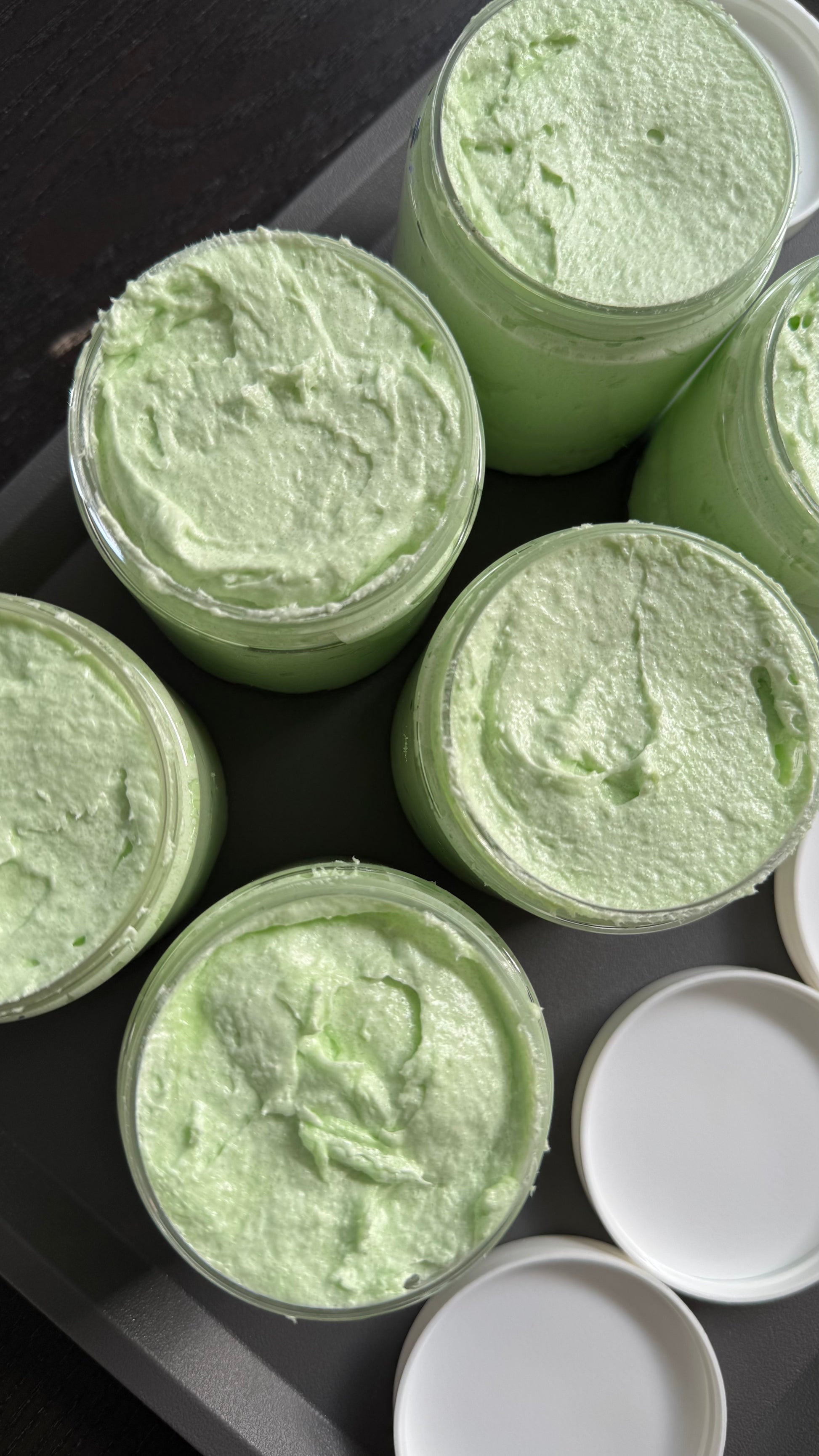 Light and fluffy, with loads of sugar to smooth and soften your skin, while washing up at the same time! This whipped soap is creamy and full of lather that you can use for shaving too. Add a dollop to a shower pouf for a body wash.